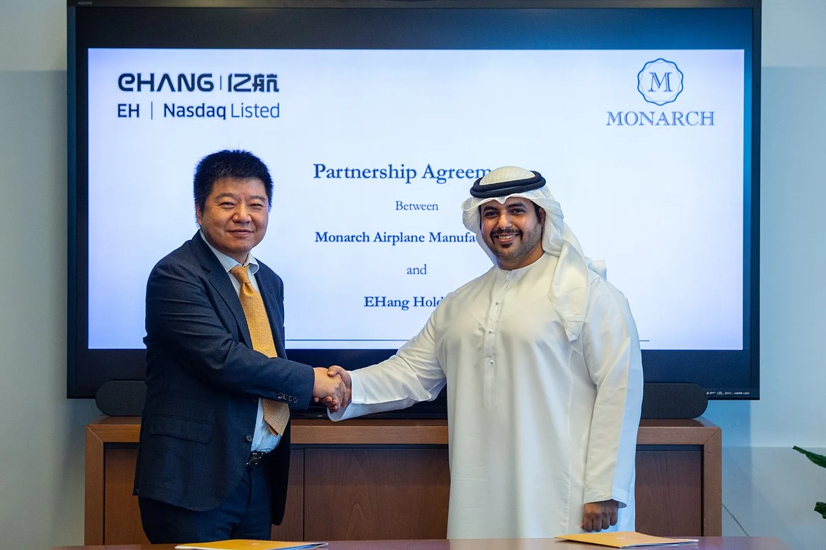 Hussain Ali Alomaeirah, founder and chairman of Monarch, signed the agreement with Yang Nick Ning, board of director of EHang holdings.