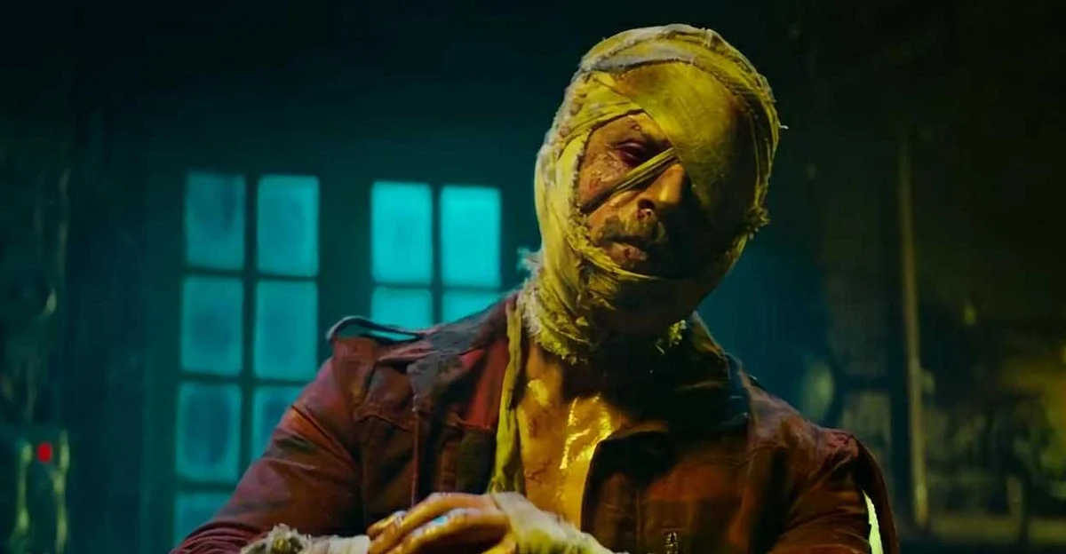 Photos and videos released on social media showed fans going to theatres wrapped in bandages around their head, posing as King Khan's character 'Azad Rathore' from the movie.