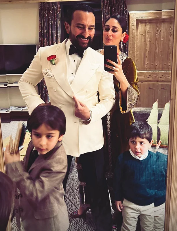 In the next picture, their kids- Taimur and Jeh joined them and posed in their style.