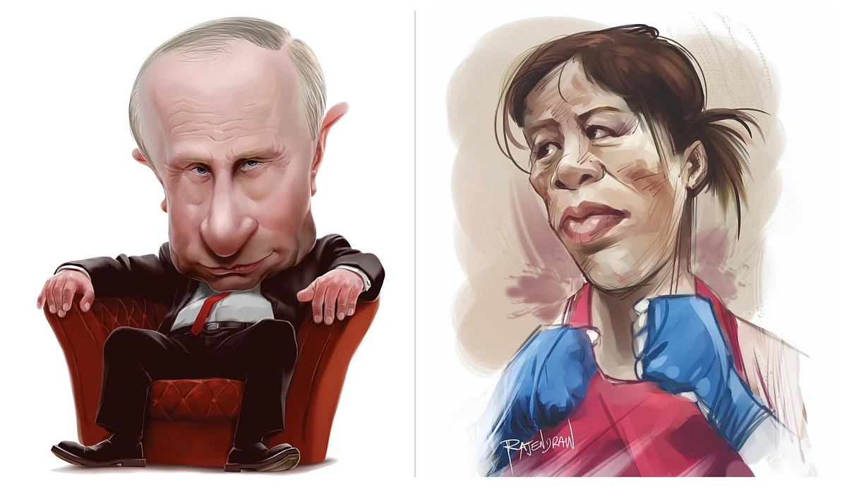 Indian boxer Mary Kom's caricature reflects the hope in the eye and the gravel in the gut