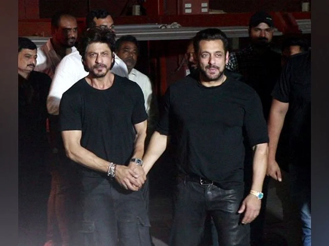 Salman donned a black t-shirt with black jeans, and Shah Rukh, on the other hand, was also seen in an all-black attire.