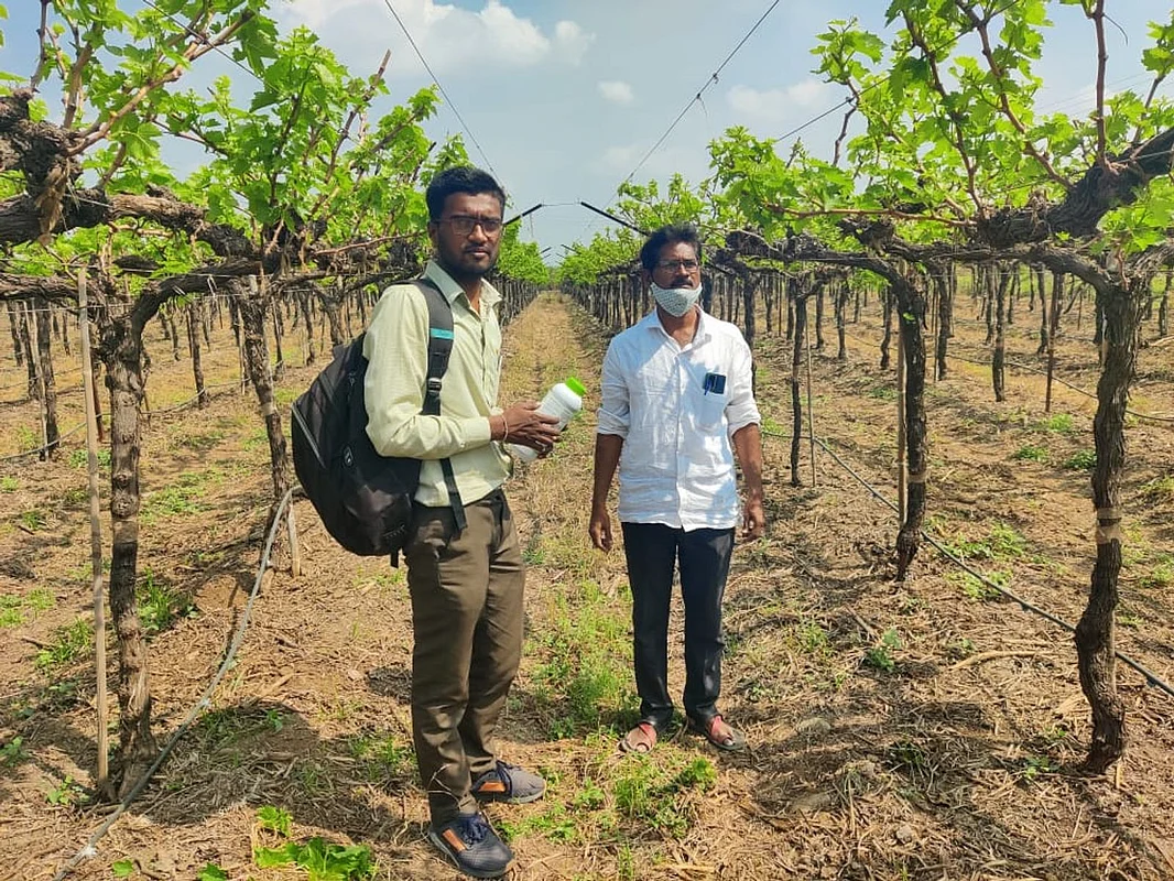 He is indicating towards two close-by bunches of grapes, evidently heavy with the crop. Yogesh is a grape producer in Nashik-Maharashtra, which is also called the “grape capital of India". He was part of a group of farmers who agreed to try a new type of all-natural biostimulant on their crops. What makes the results noteworthy is that this abundant grape crop was achieved without the use of any chemical-based inputs.