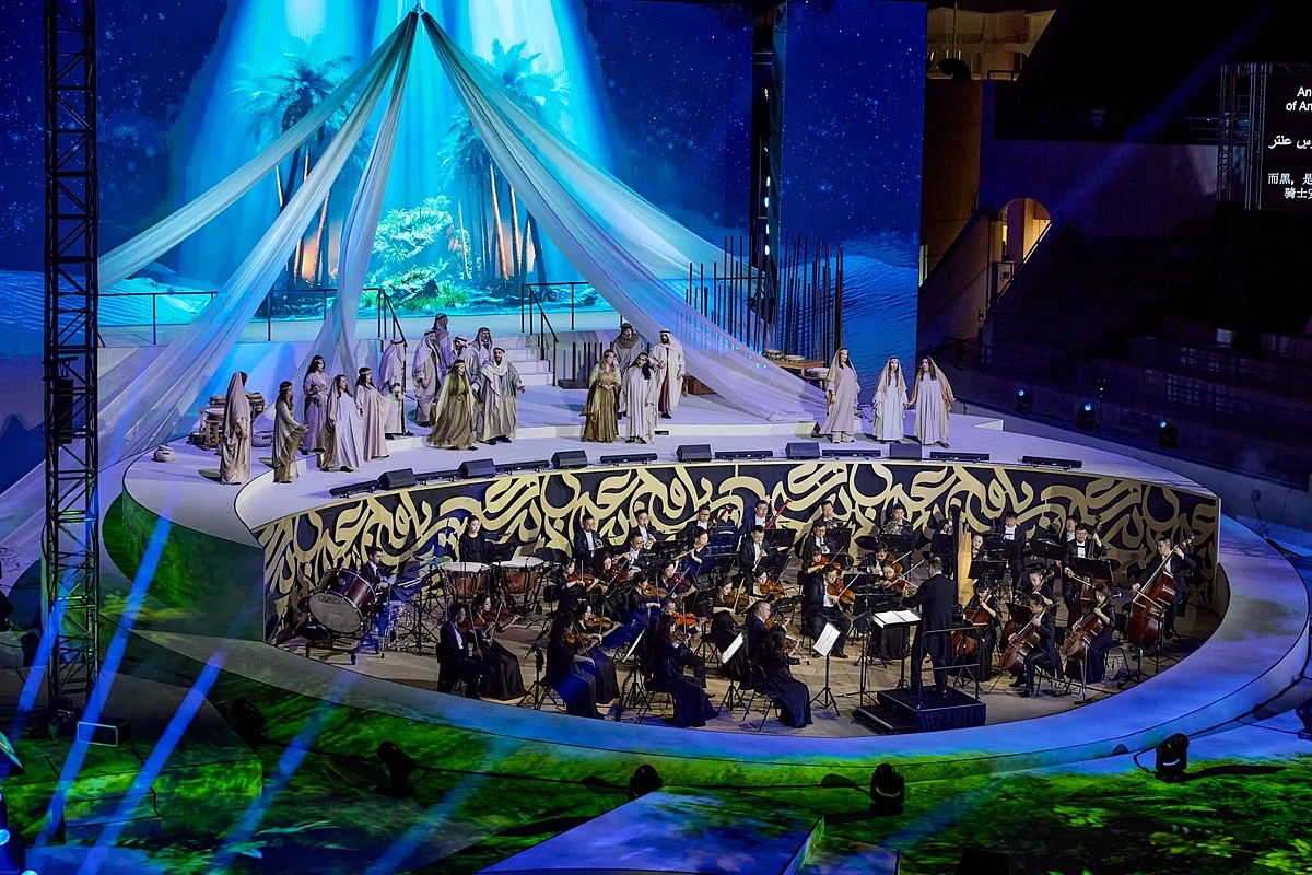 The preview night gave audiences a taste of the production’s scale and ambition. The Lanzhou Symphony Orchestra filled the venue with a sweeping musical score, while lighting, projections and choreography painted the desert epic in modern colours. Behind the scenes, the team transformed the International Tennis Centre at Zayed Sports City in just ten days, constructing a 300-sqm stage and expansive digital backdrops that allow the poetry and movement to unfold with unusual clarity for an outdoor opera.