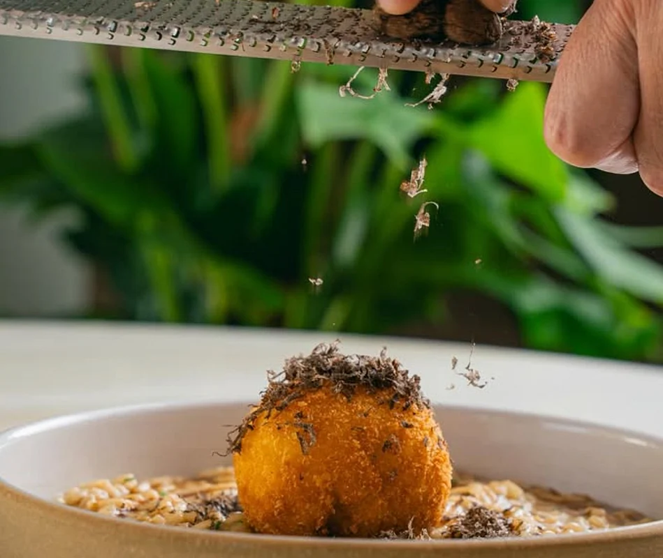 We opted for the restaurant’s summer menu, which had a series of delicious, hearty modern interpretations of European classics. The meal commenced with house-baked bread and soon after, a pressed corn-fed chicken, foie gras, date, walnut, and chicory terrine of sorts which, while complex in flavour, was a delightfully light and elegant start. Following this, the richness of the dishes rapidly intensified. We then enjoyed the artichoke risotto, topped with Nick Alvis’ signature deep-fried hen’s egg.