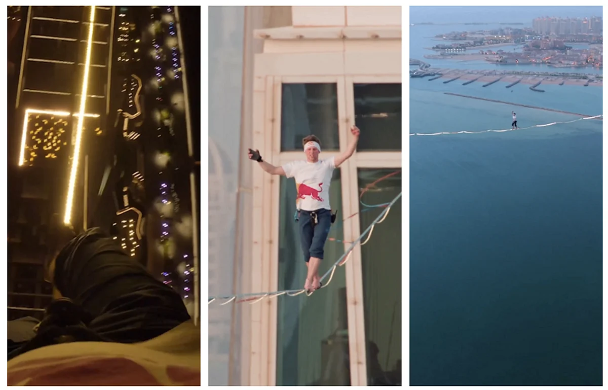 Jaan Roose, a Red Bull athlete, walked an LED-lit slackline between two curved buildings housing the Raffles and Fairmont Doha hotels. Although Roose is no stranger to daredevil acts and intense slackline feats, this was his highest urban walk, according to Qatar news media.