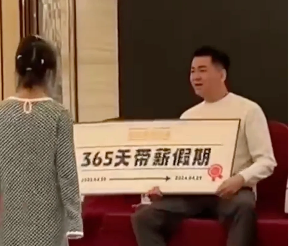 An employee in Shenzhen, China, couldn't believe it when he was handed a big cheque that says he had won 365 days of paid leave, according to media reports.