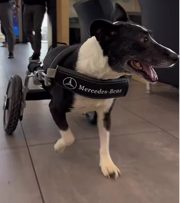 And didn't Mercedes just love the idea? The carmaker collaborated with Eddie's Wheels, a company that creates custom dog wheelchairs, and gifted Bunny a pair of wheels to run around.