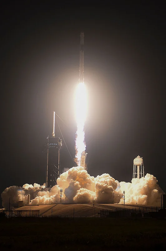 At the launch site, the SpaceX Falcon 9 rocket and Dragon spacecraft Endeavour are ready for the crew's arrival.