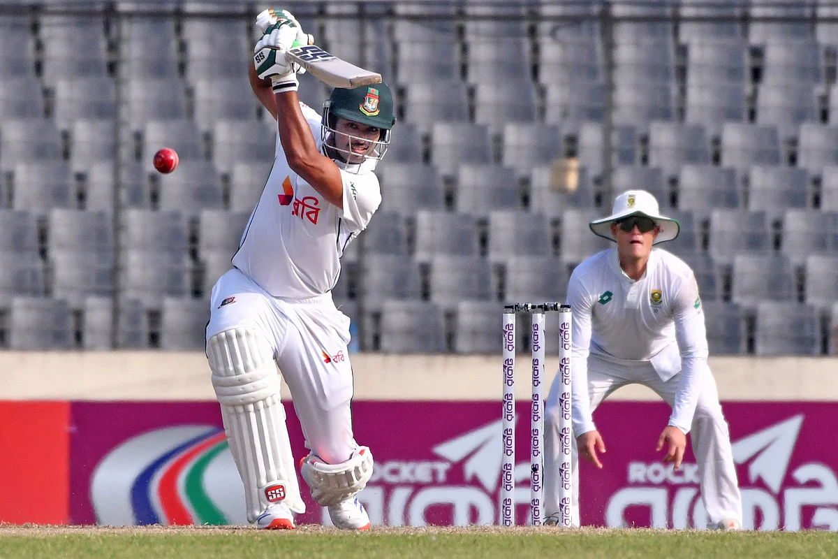 Captain Najmul Hossain Shanto fell lbw to Keshav Maharaj after a gruelling 23 off 49 balls.