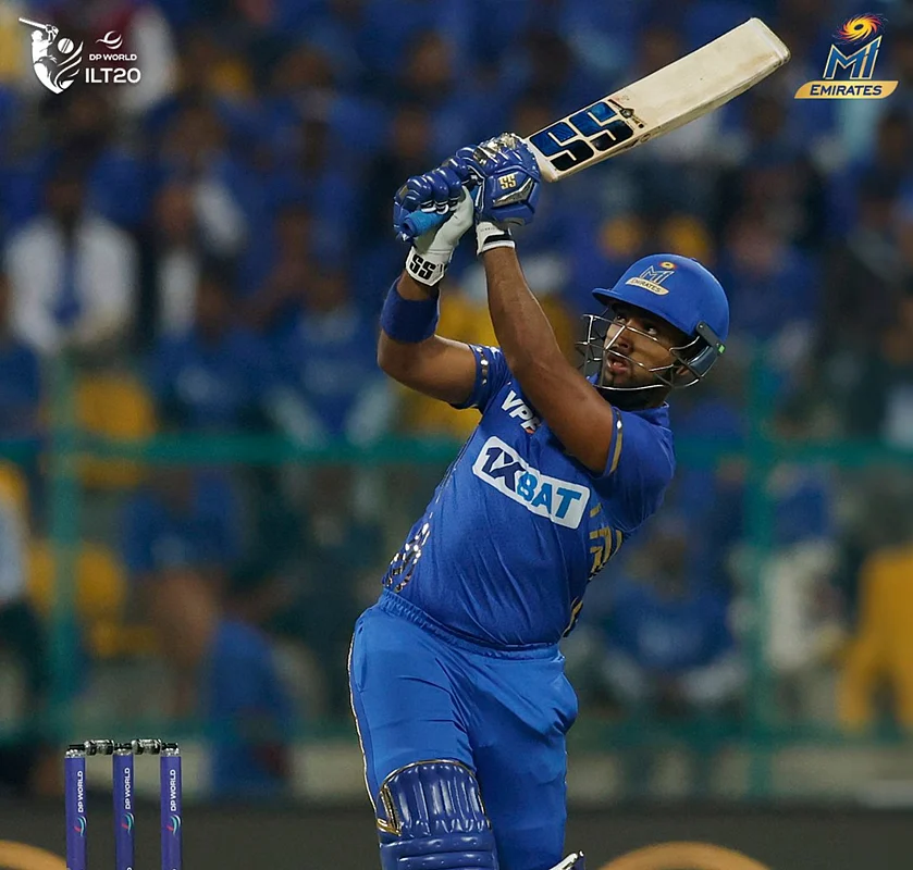 Nicholas Pooran and Tim David's explosive knocks helped MI Emirates record a comfortable win