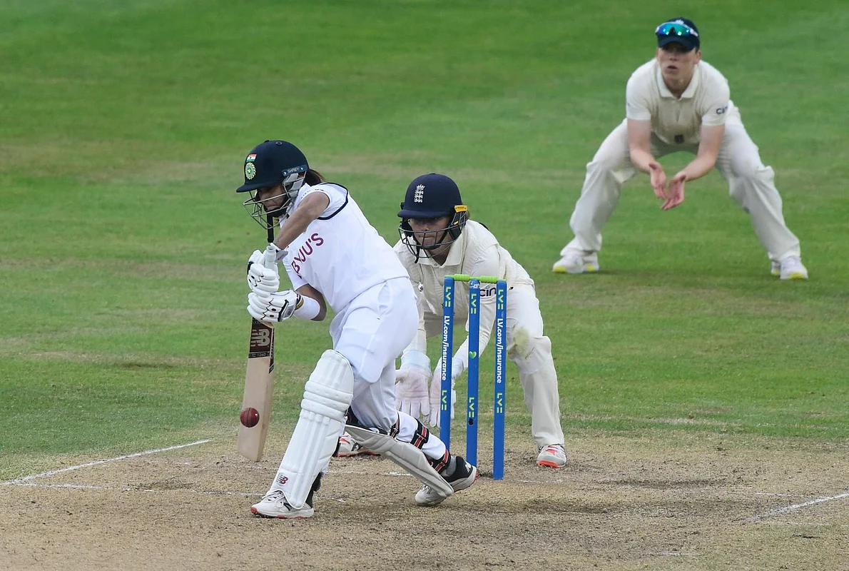 After the tea break, Sneh Rana hit some boundaries in quick succession and as a result, India's lead went beyond the 100-run mark. Taniya Bhatia provided the needed support to Rana, and in the end, both batters ensured that India walked away with a draw. Bhatiya remained unbeaten on 44. Bhatiya and Rana put on a partnership of 104 runs for the ninth wicket.