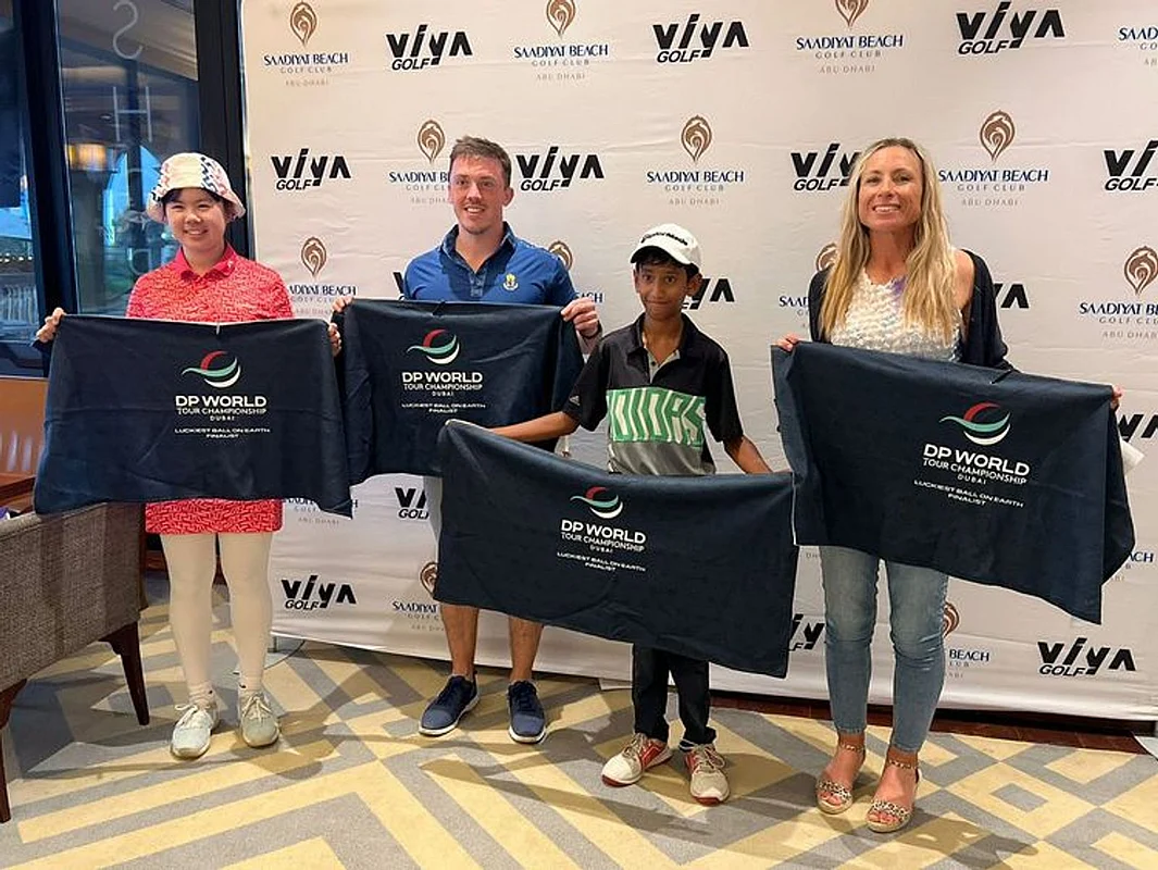 Barry Dwyer, Stephanie Bochet, Aarav Ganguly and Zurich Kanokpornvasin won their respective Divisions in the DP World Tour Championship's Luckiest Ball on Earth initiative at Saadiyat Golf Club, Abu Dhabi.
