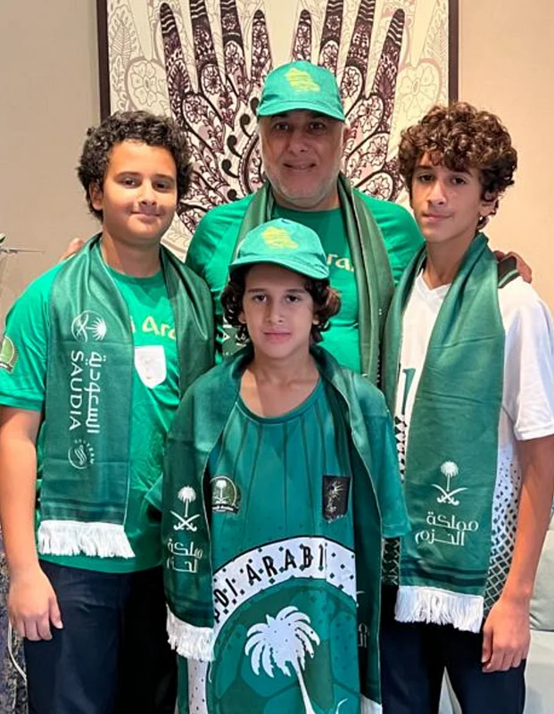 Fahad's wife Mawada Alwazir said that she took her kids out of school earlier today to watch the match. She was in the room when the Saudi team scored the first goal, running in as she heard the cheers of her three kids and husband in the living room.