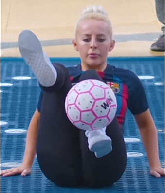 Liv Cooke, wearing a Barcelona football club jersey, came up with 76 sit-down alternating crossovers on the way to the new record