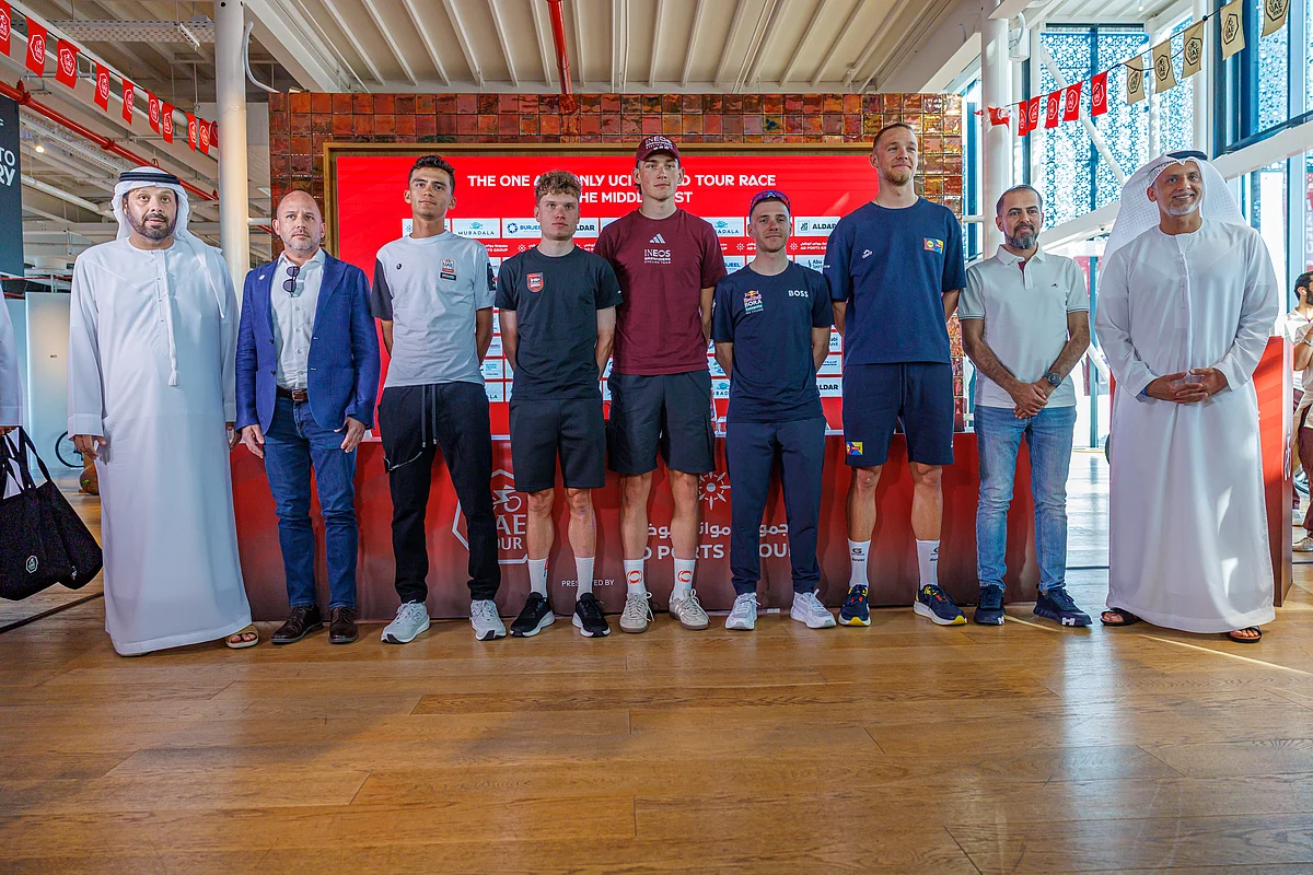 Remco Evenepoel of Red Bull Bora Hansgrohe, Isaac del Toro of UAE Team XRG, regarded as one of the most prominent rising talents after winning the Tour de l’Avenir 2023 and joining UAE Team, Jonathan Milan of Lidl Trek, Joshua Tarling of Ineos Grenadiers, and Lennert Van Eetvelt of Lotto Intermarché, affirmed their readiness to compete in the eighth edition of the UAE Tour.