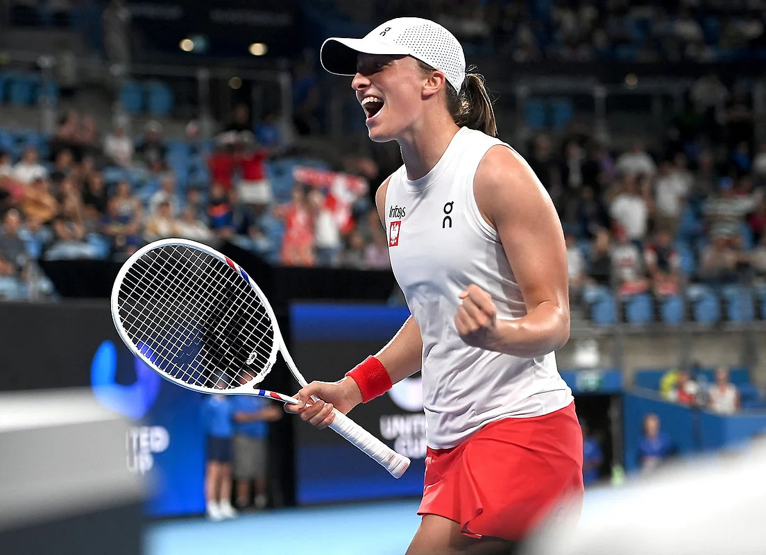 Iga Swiatek settled the tie after an almighty battle with Katie Boulter, prevailing 6-7(4) 6-1 6-4 as last year's runners-up booked a last-four clash with Kazakhstan in the $10 million tournament before the Jan. 12-26 Australian Open.