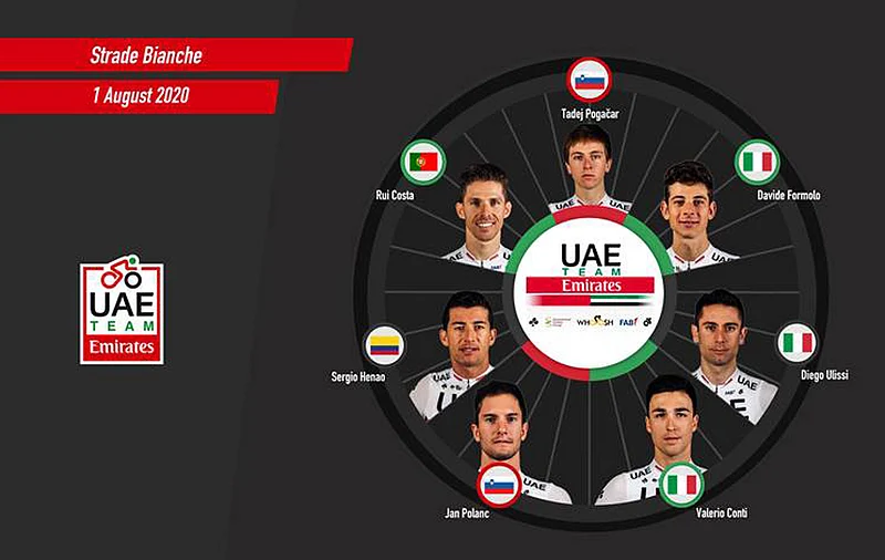 The 2020 edition, which was postponed in March due to the global pandemic, returns on Saturday, Aug. 1 and UAE Team Emirates has assembled an all star cast to take on the 184-km route, which starts and finishes in Sienna.