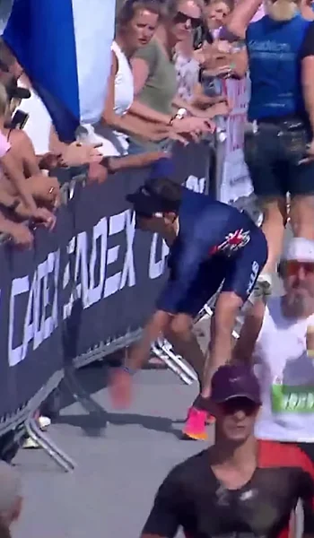 In what perhaps were the most frightening visuals to have come out of a track, Great Britain triathlete Kieran Lindars was seen collapsing and getting up to complete an eight-hour race in Amsterdam.
