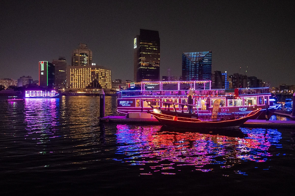 Abras: Watch the Dubai Creek transform into a piece of art as 40 light-festooned Abras ply the length and breadth of it. The boats have been decorated with bright pink and blue lights, with many carrying signs of Dubai and other fun illustrations.