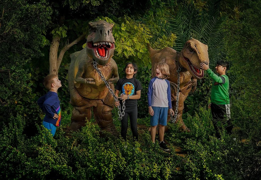 Dubai Parks and Resorts has announced free entry to an interactive experience which brings the prehistoric world to life with a series of life-like animatronic dinosaurs, including the mighty T-Rex, triceratops, playful raptors and many more.