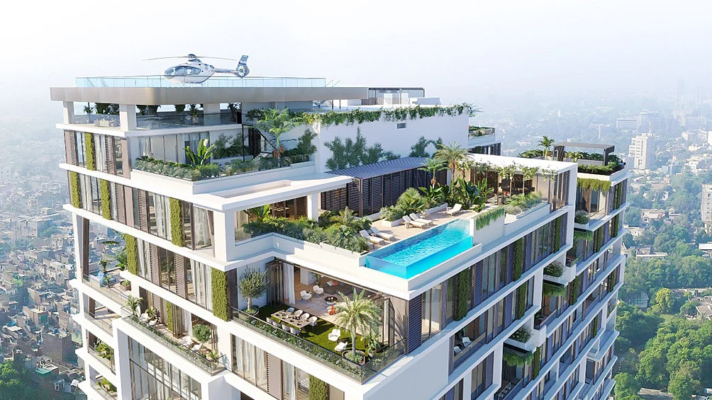 Forest V lifestyle offerings define elevated living with a surreal plan of luxury amenities for residents that include a swimming pool, world-class fitness center, indoor badminton and paddle tennis courts, in-house cinema, private hospitality lounges, short-term stay suites for resident guests, cigar and sports lounge, collaboration with an international health and wellness spa, a rooftop helipad for air pick and drops, and cafes and restaurants with menus designed by Michelin star chefs.