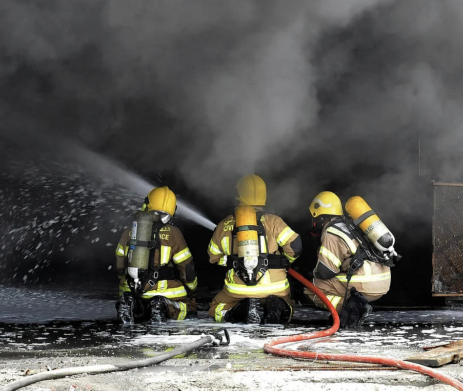 Post-fire safety procedures are now underway, including cooling and smoke extraction operations.