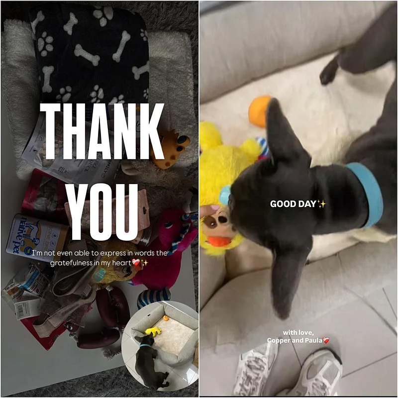 She then proceeded to show a care packet full of dog toys, sent to her by a pet-loving family
