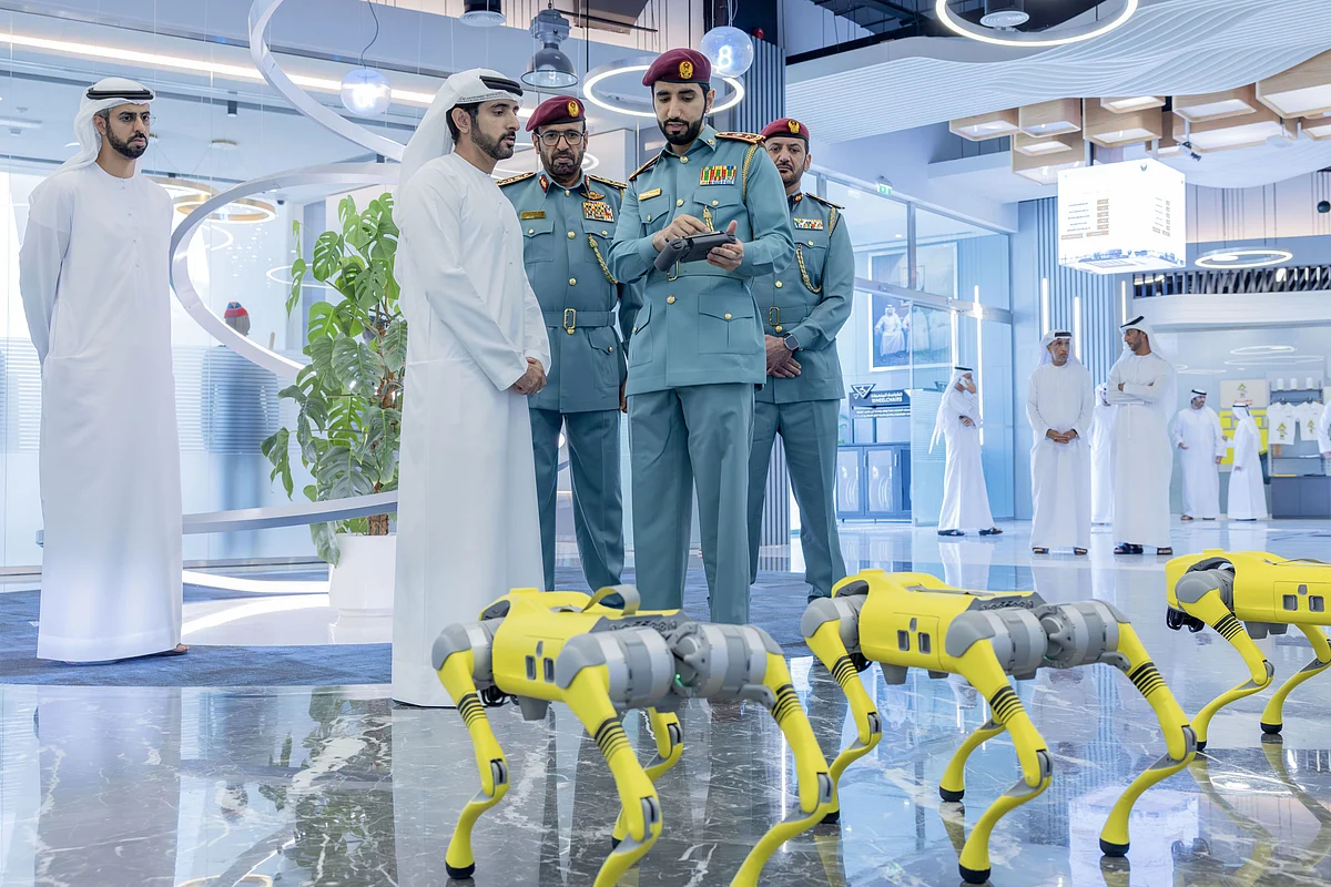 During the visit, Sheikh Hamdan also met with artificial intelligence specialists in civil defence and received a detailed briefing on the use of AI tools and the latest innovations in firefighting and rescue operations. He was briefed on the ‘Explorer Robot’, a four-legged robot equipped with LiDAR technology to move autonomously through smoke and create accurate 3D maps of buildings during incidents.