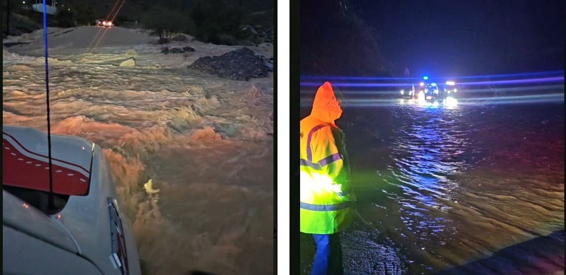 Teams from the Dubai Police managed to save two elderly people from vehicles that were almost swept away by floods in Hatta, after heavy rains lashed the country.