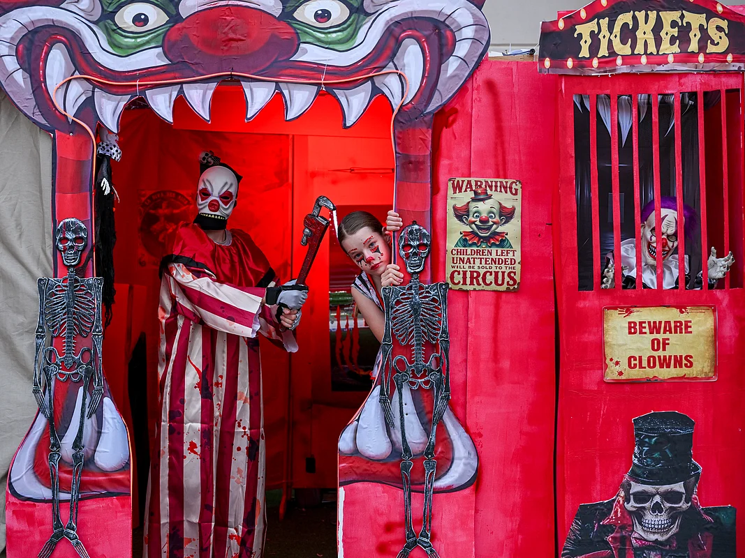 “I collected things from neighbours, from trash, from around — boxes, wood, old chairs. Someone even threw out perfectly good curtains that became part of my circus,” she said with a laugh. “This year’s theme is colourful and interactive. Last year, it was darker — underwater horror. Now, it’s all about fun and chaos.”