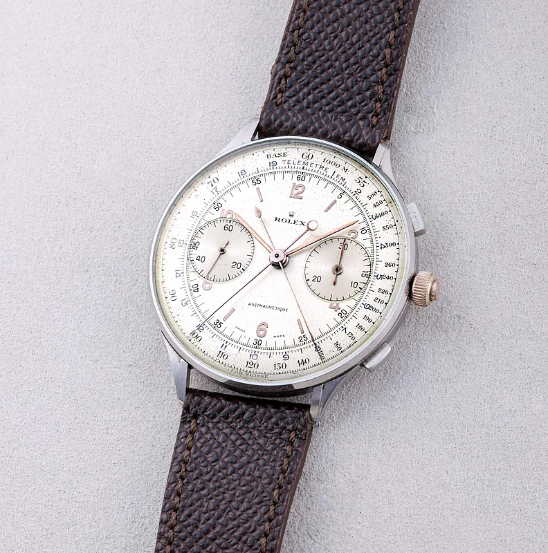 Produced in the 1940s, only a dozen Rolex Reference 4113s were ever made, with only 9 known to have survived to date; it is the only ‘split-seconds’ vintage chronograph that the manufacturer ever produced