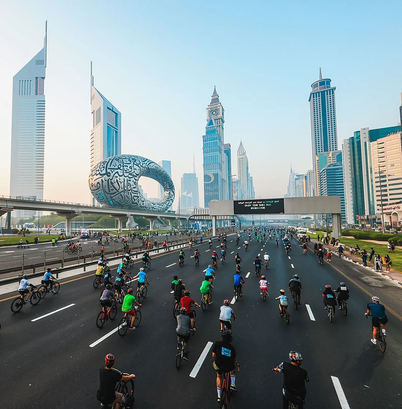 Dubai Ride, presented by DP World, is a much-loved highlight of the Dubai Fitness Challenge (DFC)- an initiative launched in 2017 by His Highness Sheikh Hamdan bin Mohammed bin Rashid Al Maktoum, Dubai Crown Prince and Chairman of The Executive Council of Dubai to transform Dubai into one of the world's most active cities and support its broader vision to become the world's best city to live in, work and visit. Residents and fitness enthusiasts participate in the annual city-wide challenge to commit to 30 minutes of daily exercise for 30 consecutive days.