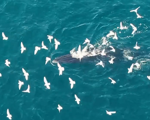 Although Bryde's whales visit Gulf waters frequently, this is the first observation of multiple individuals gathering at one location, specifically to feed