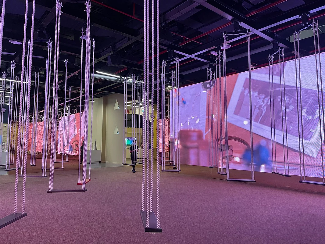 The highlight of the pavilion is the dozens of swings that urge visitors to 'fly above Lebanon' and enjoy drone shots of the country's beautiful landscape.