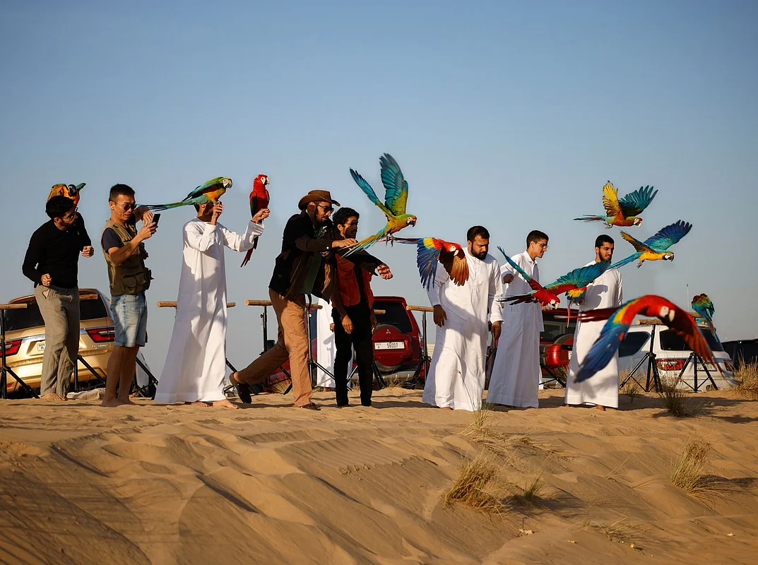 The 41-year-old is part of a team of around 30 members from diverse backgrounds that aims to showcase the country's avian expertise on global stages. They are supported by the UAE's Happiness Parrots Team.