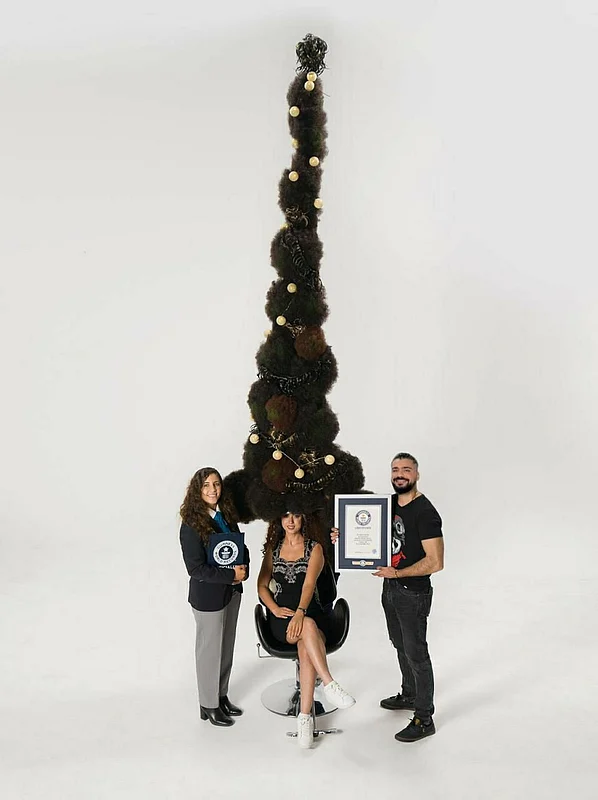 "In 2020, since we had time during the lockdown, I got time to plan my salon and opened it the following year. By then, I had got the approval to take part in the Guinness World Record. The last record for the tallest hairstyle in the world (achieved by a group of artists) was 2.16 metres and I broke it in 2022 with a Christmas tree hairstyle that was 2.9 metres high. The model was one of my clients who volunteered (to be part of the record) to sit through the ordeal.”