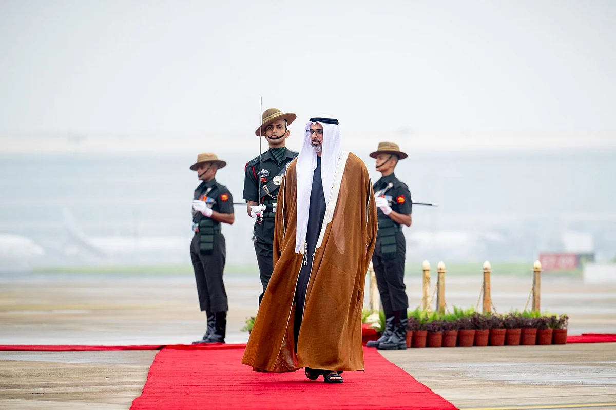 Sheikh Khaled reviewed a ceremonial guard of honour and observed a traditional cultural performance reflecting India's deep-rooted heritage and rich culture.