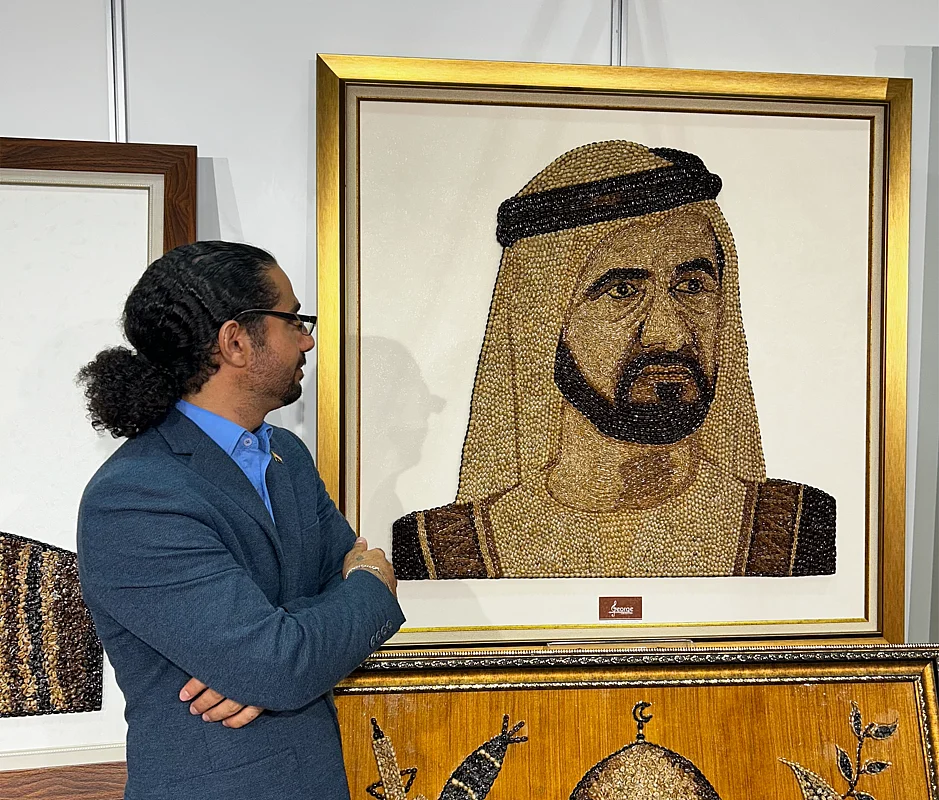 An Egyptian expat used thousands of coffee beans and meticulously glued them to the canvas to create a unique portrait of Sheikh Mohammed bin Rashid. He spent two months working on it and poured his heart into brewing this unconventional art piece.