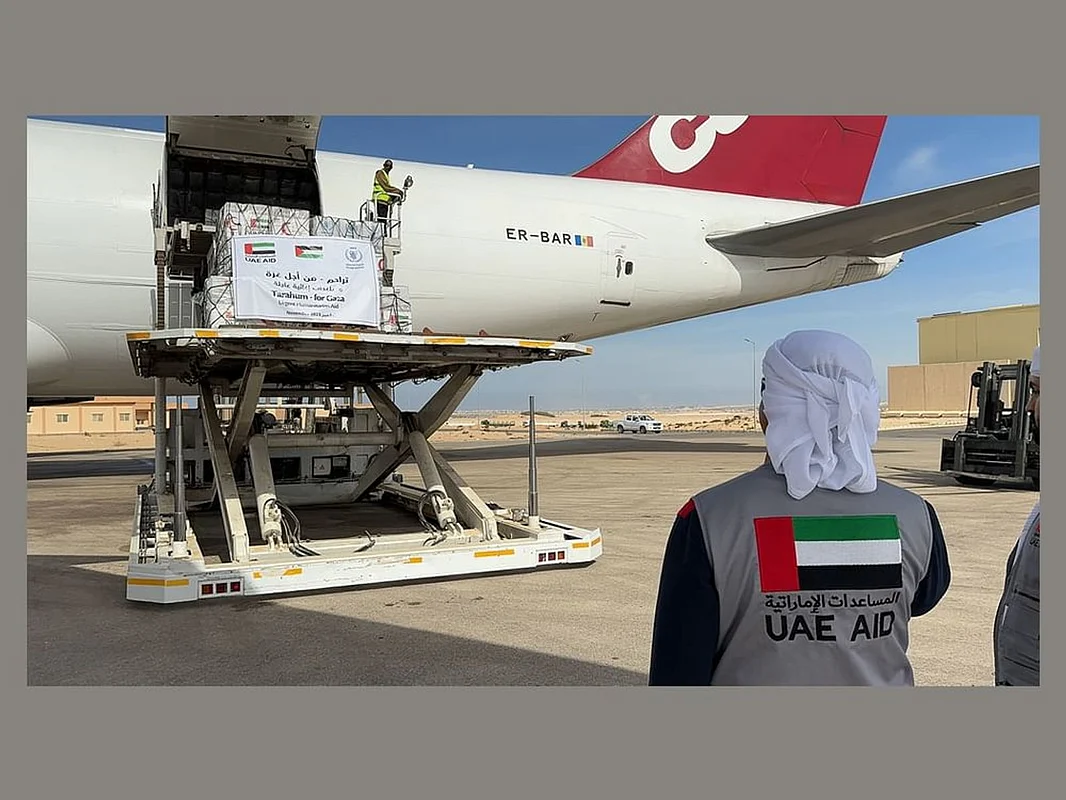 In an extension to the humanitarian efforts of the "Tarahum for Gaza" campaign, the UAE on Saturday dispatched a plane carrying 100 tonnes of food, medical, and relief supplies to El Arish city in the Arab Republic of Egypt, in preparation for entering the Gaza Strip via the Rafah Border Crossing, in coordination with the UN World Food Programme.