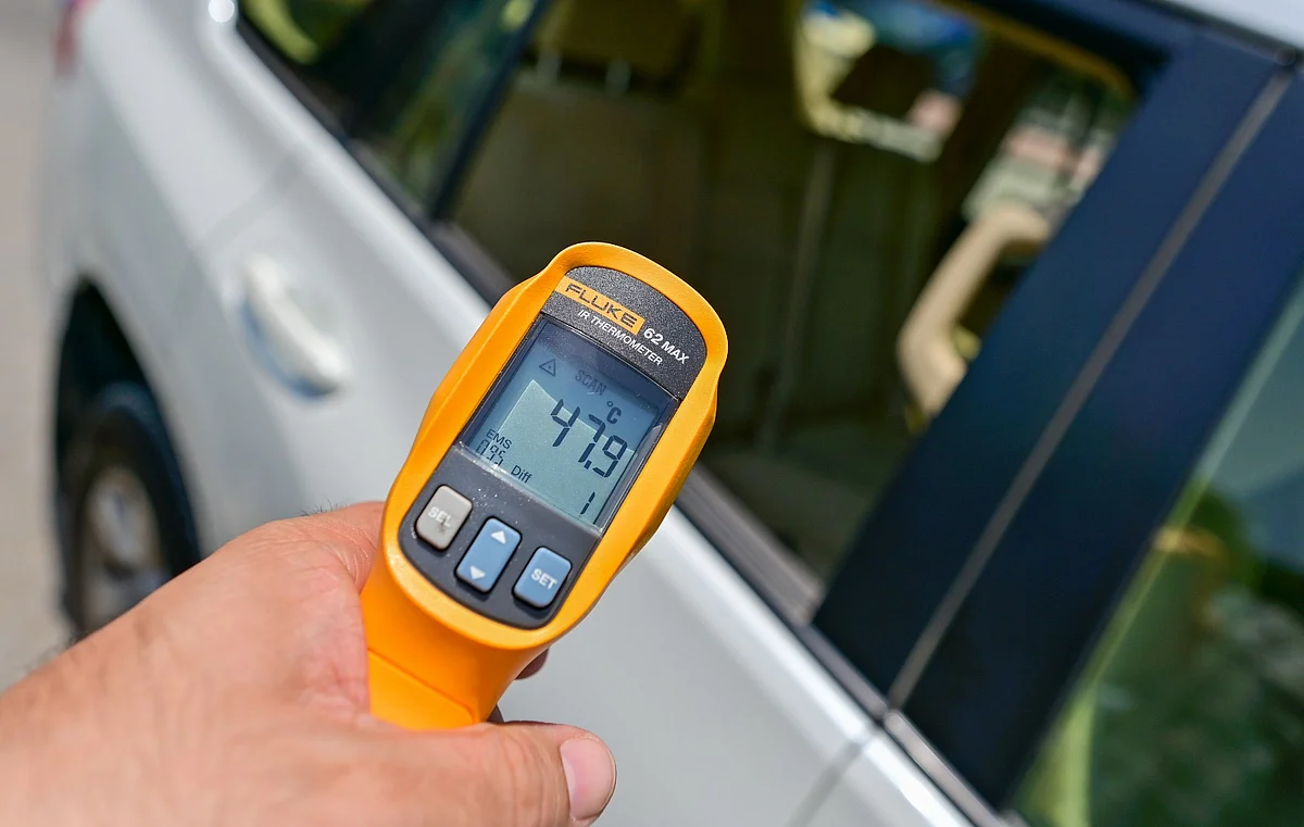 In just a few minutes, the temperature inside the car rose past the 45-degree mark - a scenario that could quickly turn tragic for a young child