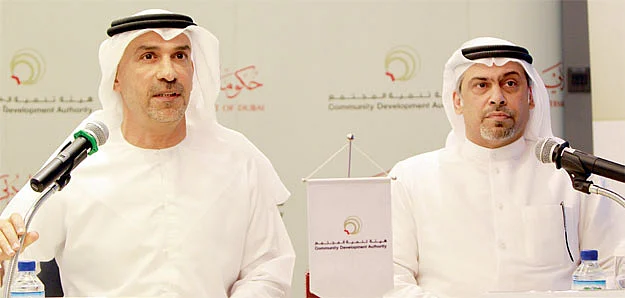 Khaled Al Kamda and Dr Hussain Al Maseeh at a press conference at the CDA head office in Dubai on Wednesday. - KT photo by Juidin Bernarrd