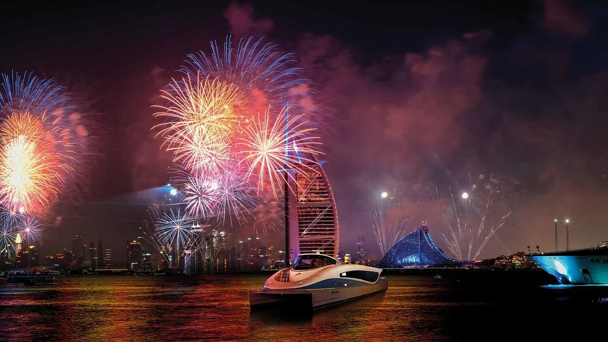 On New Year's Eve (NYE), yacht rental prices in Dubai can soar to as much as Dh360,000 for an eight-hour cruise, offering a front-row seat to the city's spectacular fireworks and drone shows.