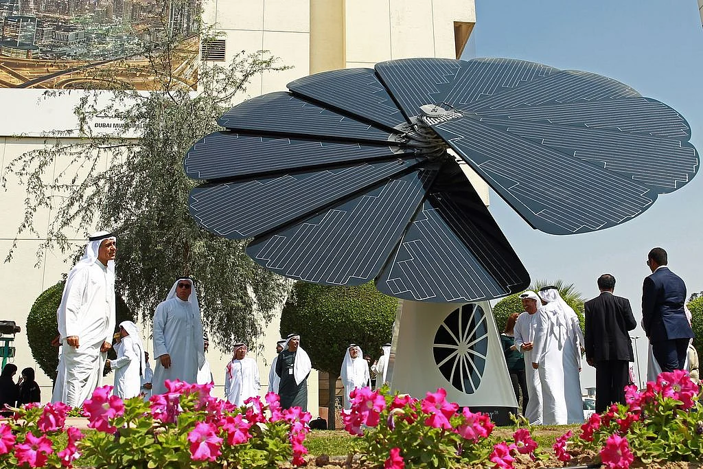 "It features a controller that positions its petals to the sun. Its wind sensors shut the petals down if there's a strong wind. If the wind is coming from a specific direction, the flower will tilt to protect itself," noted Gargash.