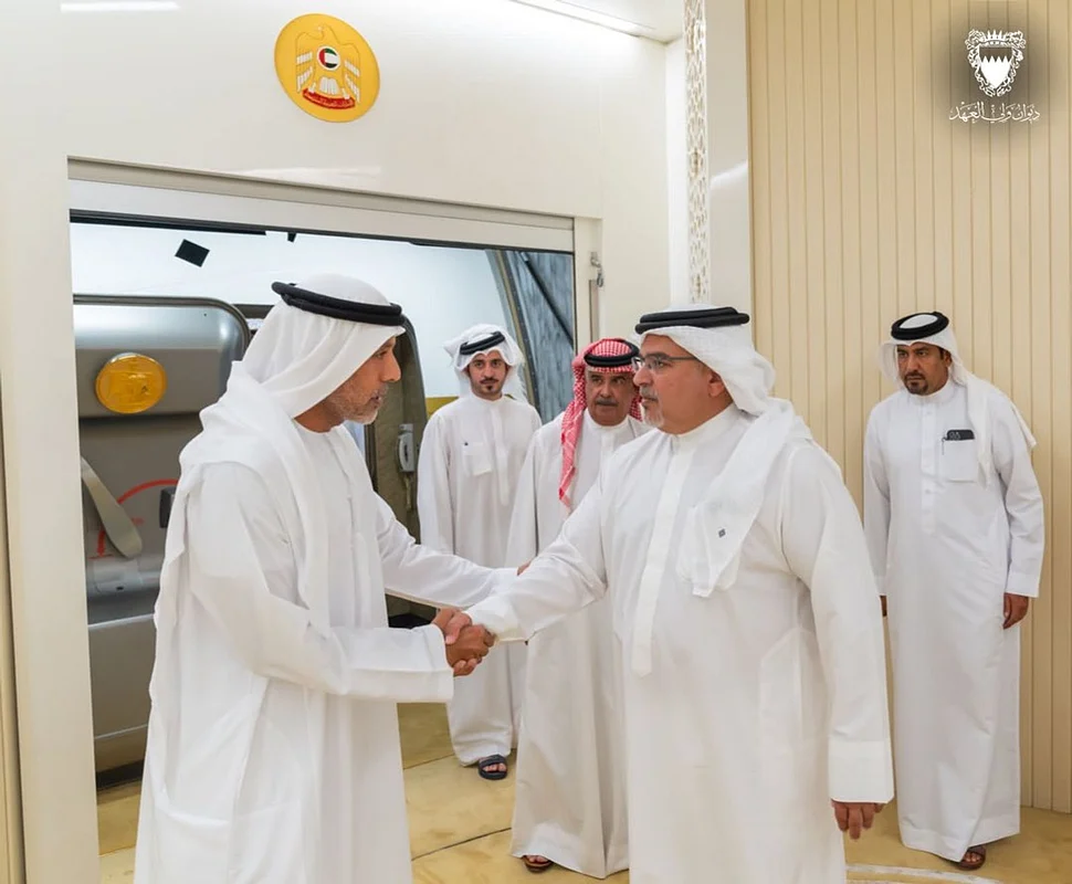 Upon arrival, Salman bin Hamad was received by the Deputy Chief of Staff of the Armed Forces of the UAE, Major General Pilot Sheikh Ahmed bin Tahnoun bin Mohammed Al Nahyan.