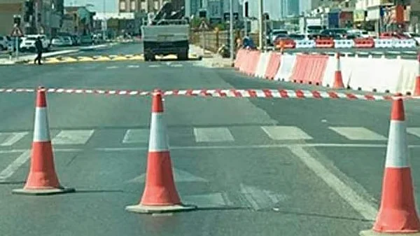 The diversion is being implemented on Al-Faseel Street in both directions (Umbrellas Street, opposite Sheikh Khalifa Hospital).