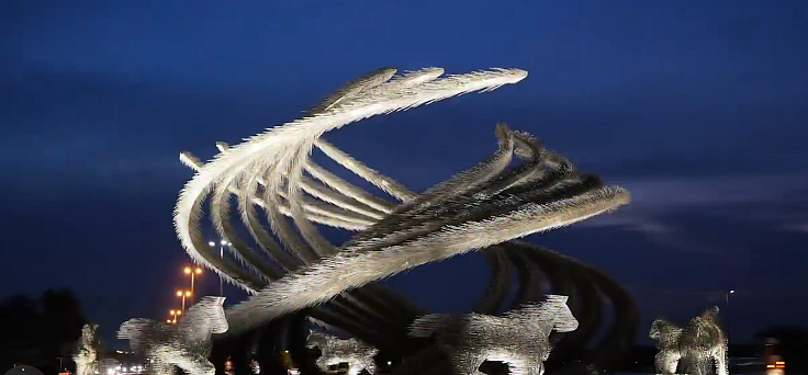 Designed by Emirati artist Latifa Saeed, the artwork showcases a spiral-like formation, surrounded by horse-shaped figures