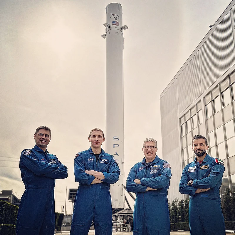 In a photo he shared on his Twitter account, AlNeyadi is flanked by crew commander Stephen Bowen, pilot Warren Hoburg, and Russian mission specialist Andrei Fedyaev. This is the first space flight for Hoburg, AlNeyadi, and Fedyaev. It is the fourth space mission for Bowen.