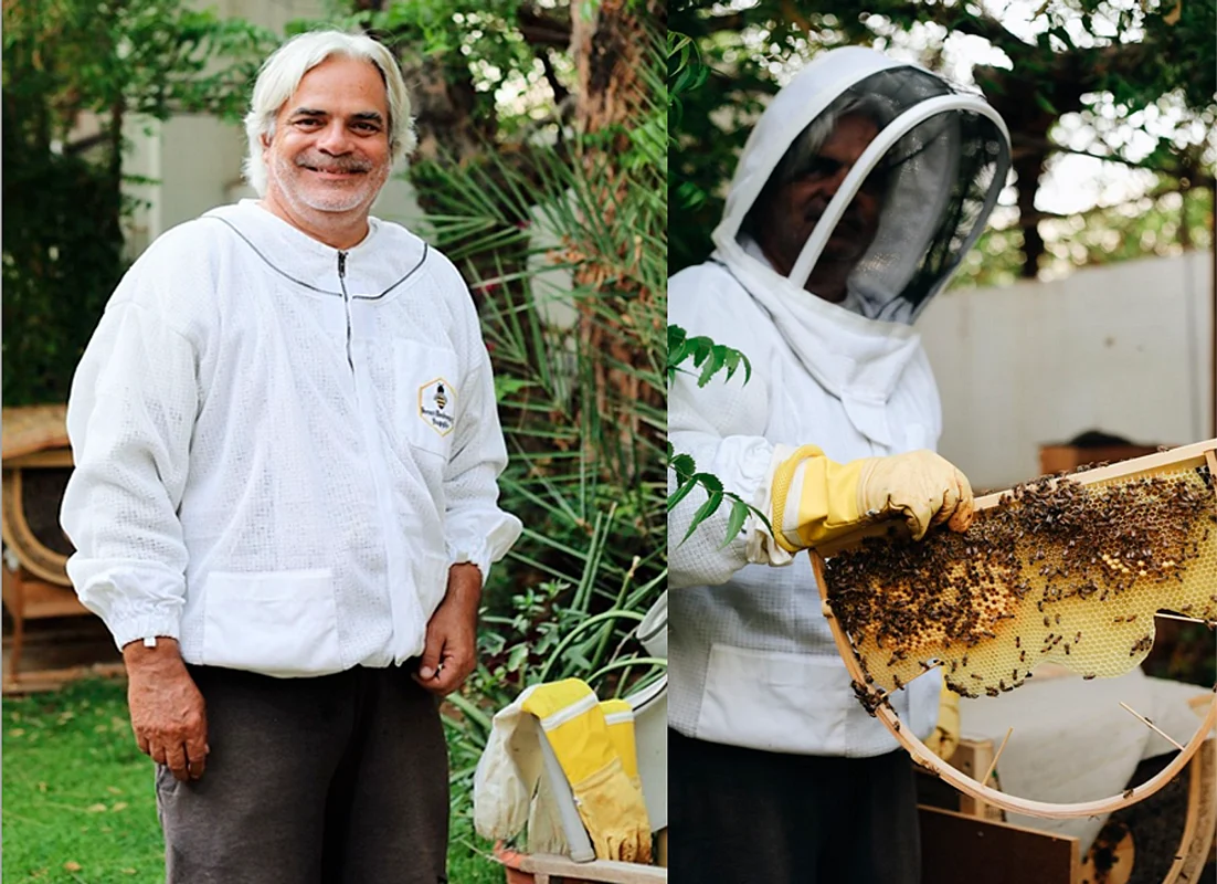 Following this simple social exchange, Olivier and his neighbour Hussein started to talk about his passion for beekeeping. “I was curious to learn more about what he did, and he shared his knowledge about the particularities of beekeeping in the UAE and he invited me to help him.”