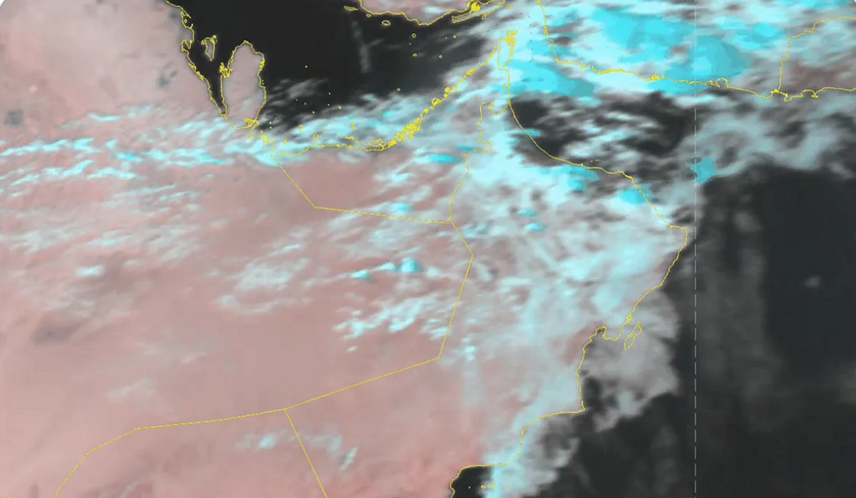 Oman's met reported clouds flowing over most governorates, with rainy cumulus clouds over parts of areas like Musandam, Al Buraimi, Al Dhahirah, North Al Batinah, and South Al Batinah, which may move later to affect the entire region.