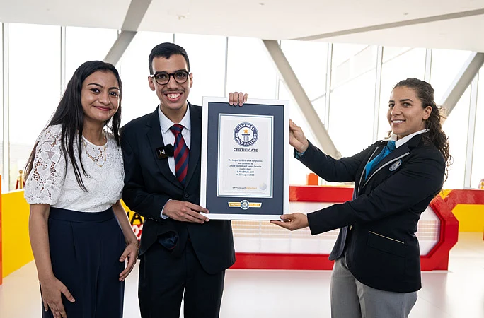 In January 2020, Zeyad took part in the world's longest handshake relay during an event held in Abu Dhabi, which inspired him to break a Guinness World Records title of his own. “I got my first LEGO box at the age of 9", he said, "and since then I was hooked. I spend hours listening to YouTube videos to learn how to create new shapes with LEGO.”
